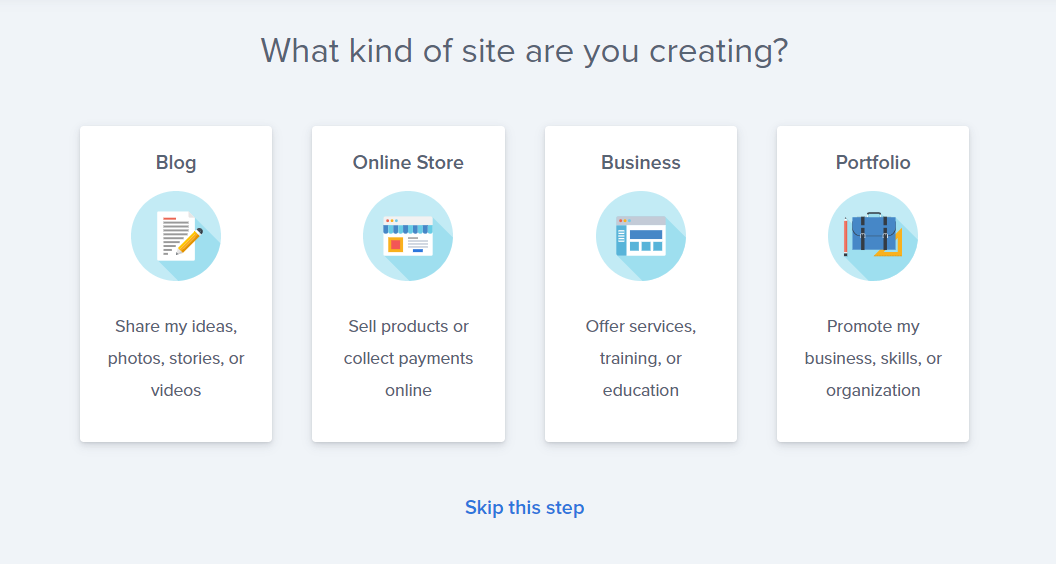 It will then ask you to choose the kind of website you’re creating. You can select one or click Skip this step.