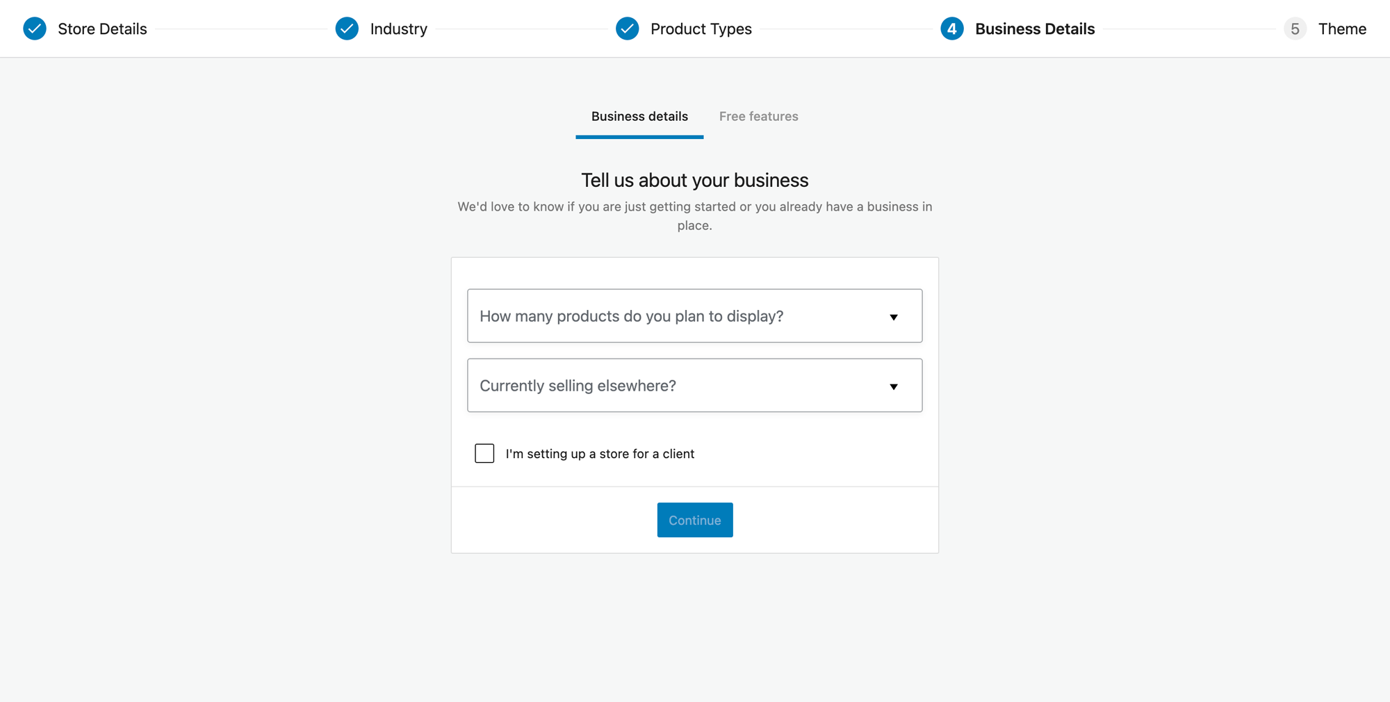 It mainly asks for how many products you’re planning to display and if there’s any other platform where you’re currently selling.