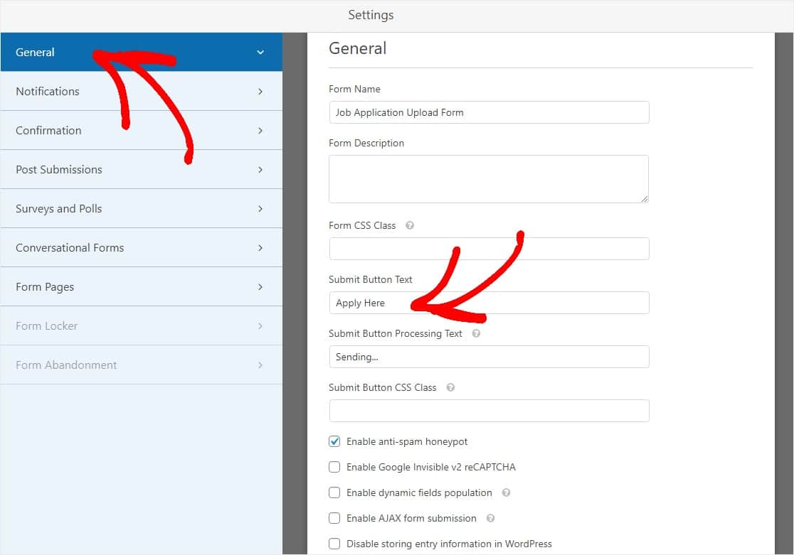 - Form Name: Change form’s name using this field