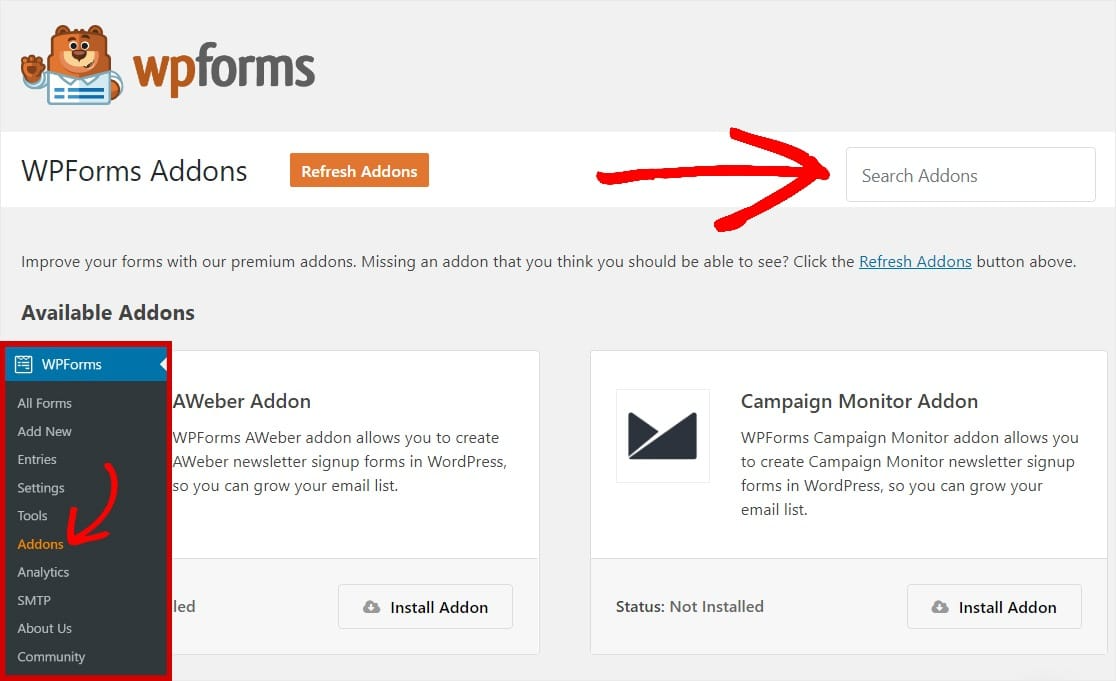 To do this, go to WPForms » Addons from your WordPress dashboard sidebar and search for Form Templates Pack.
