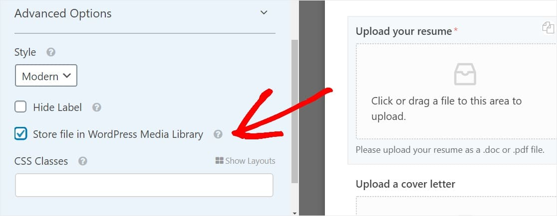 Lastly, there is the file upload field that matters the most because that field will collect the user’s resume.