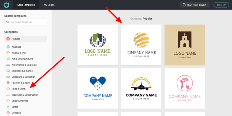 This will open the logo designing page. You will find tons of predesigned logos categorized under popular and various different categories. Simply click on any logo to start customizing it according to you.