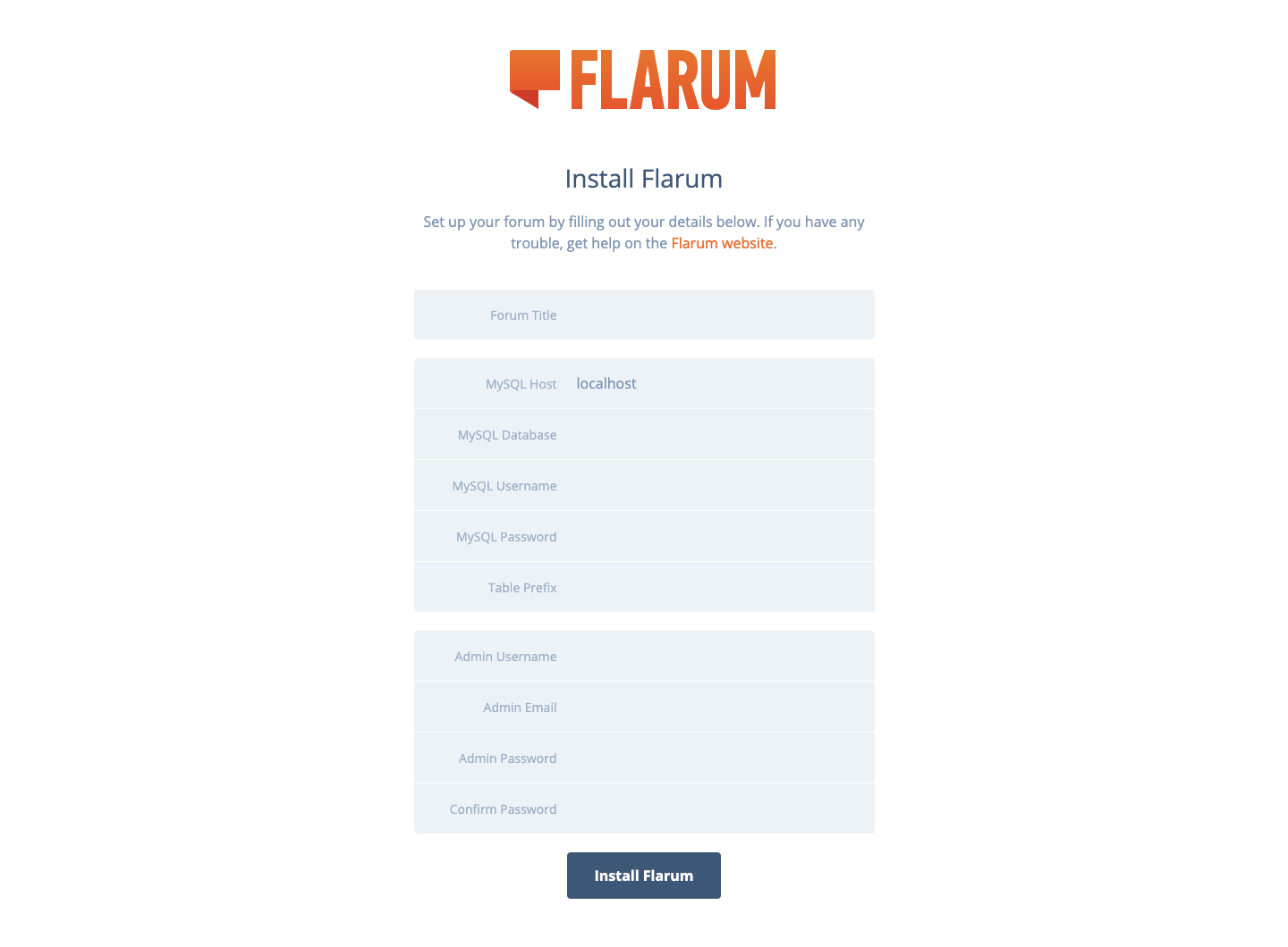 Flarum installation process will begin: