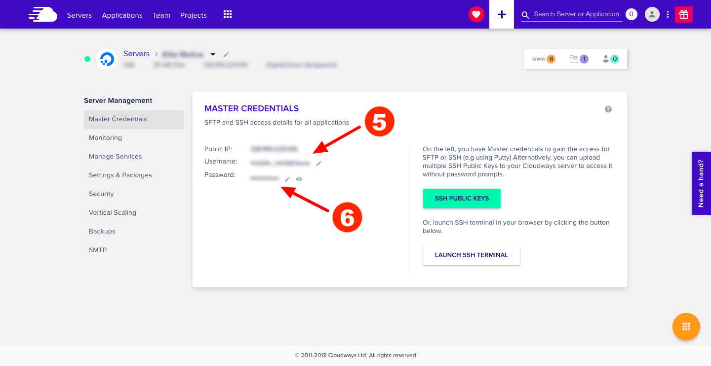 - SFTP Password: This is your Master password that you can find in the Server tab