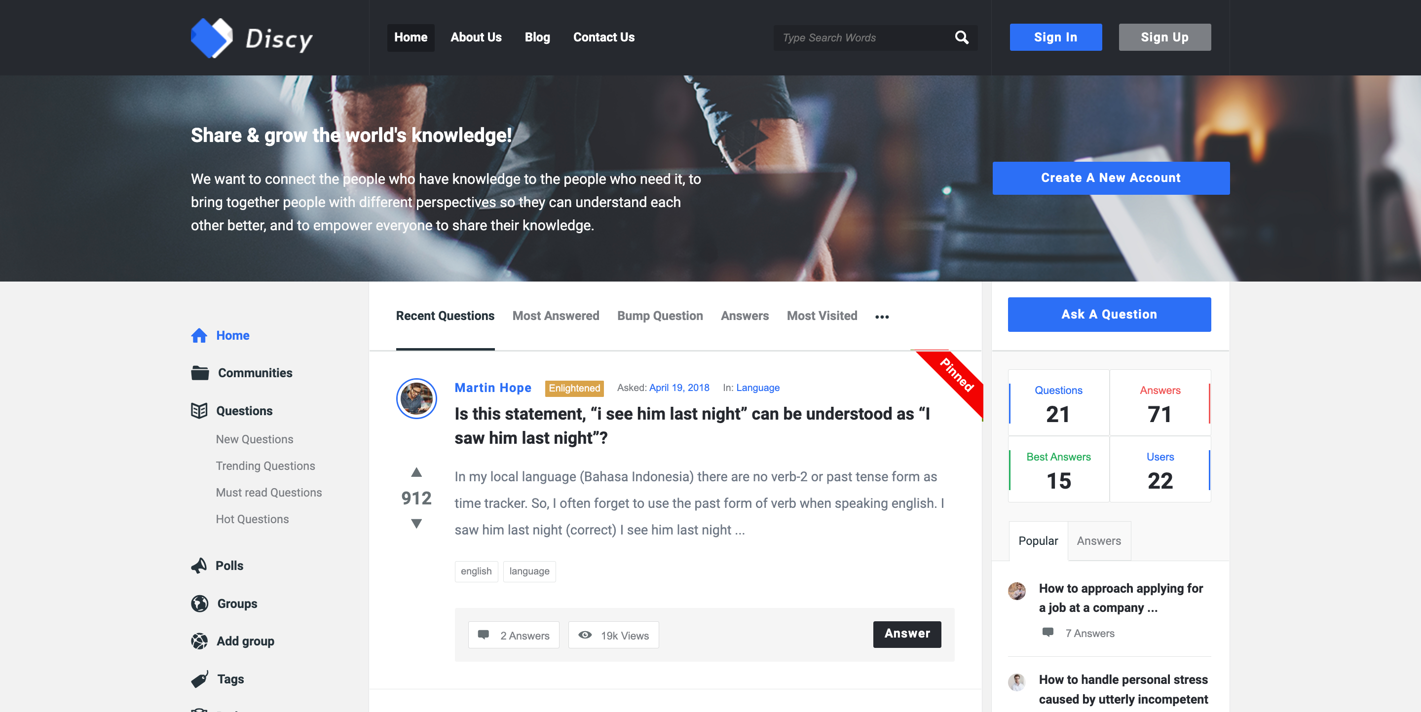 Do you want to build an online, full-featured question and answer community like StackOverflow, Quora, or Yahoo Answers? If so, Discy is here for you.