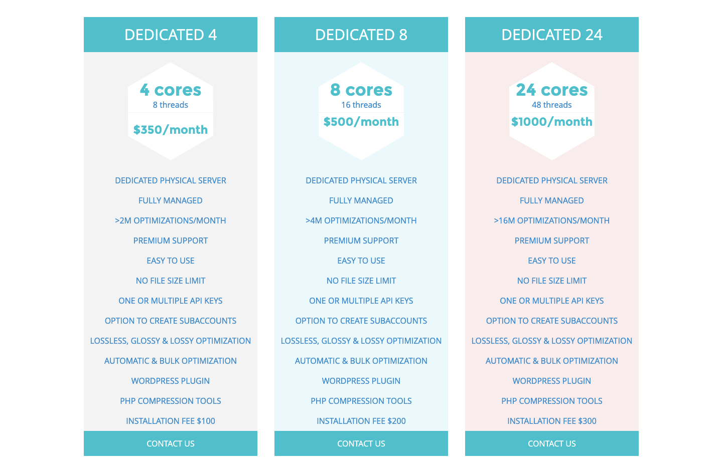 ShortPixel also offers fully managed dedicated servers for huge projects and compression demands.