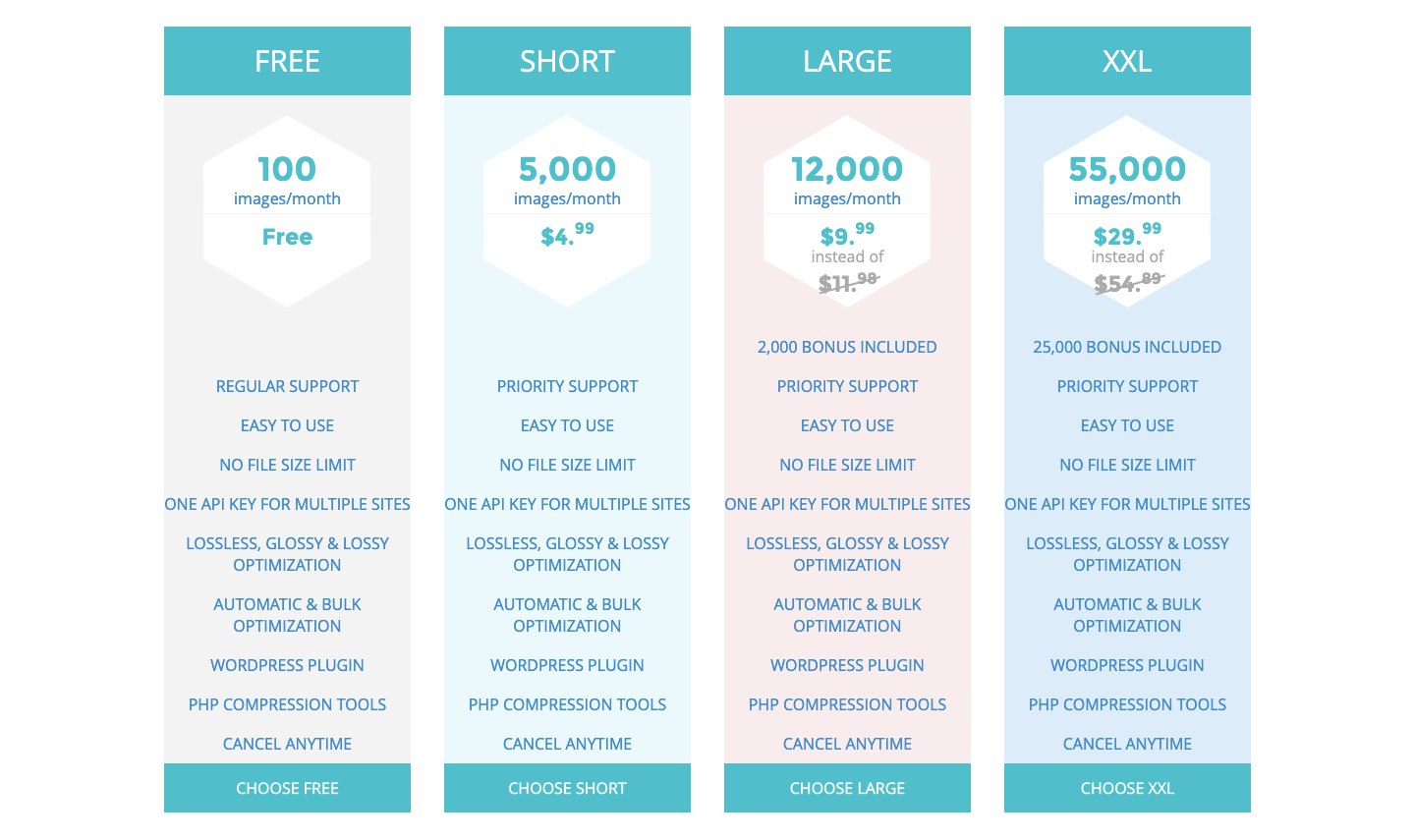 Below are the ShortPixel monthly plans before and after applying our ShortPixel coupon.