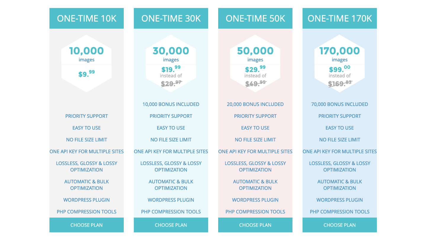 Below are the ShortPixel one-time plans before and after applying our ShortPixel coupon.