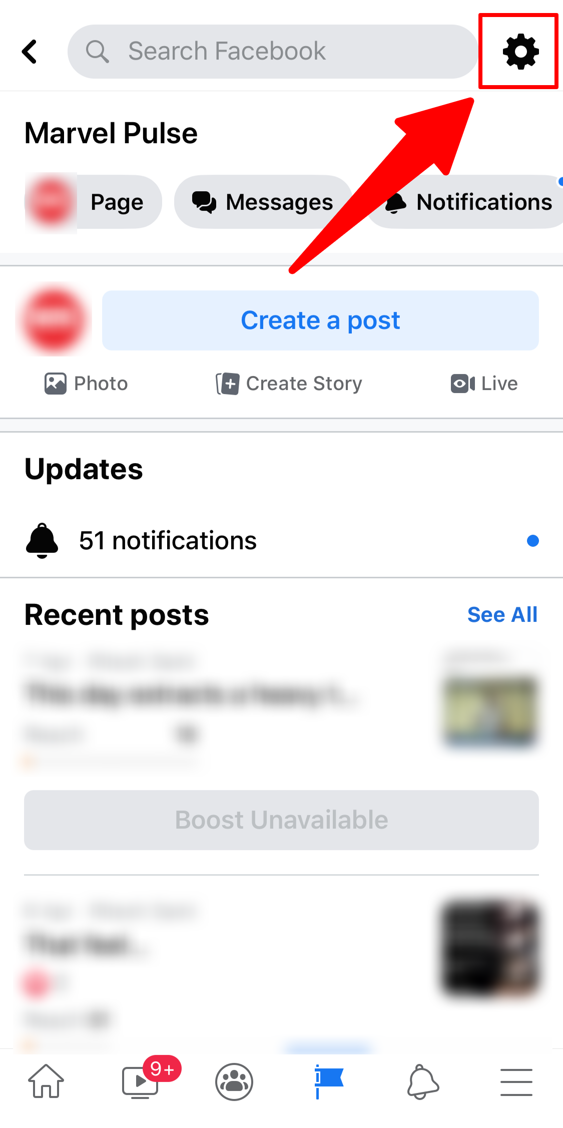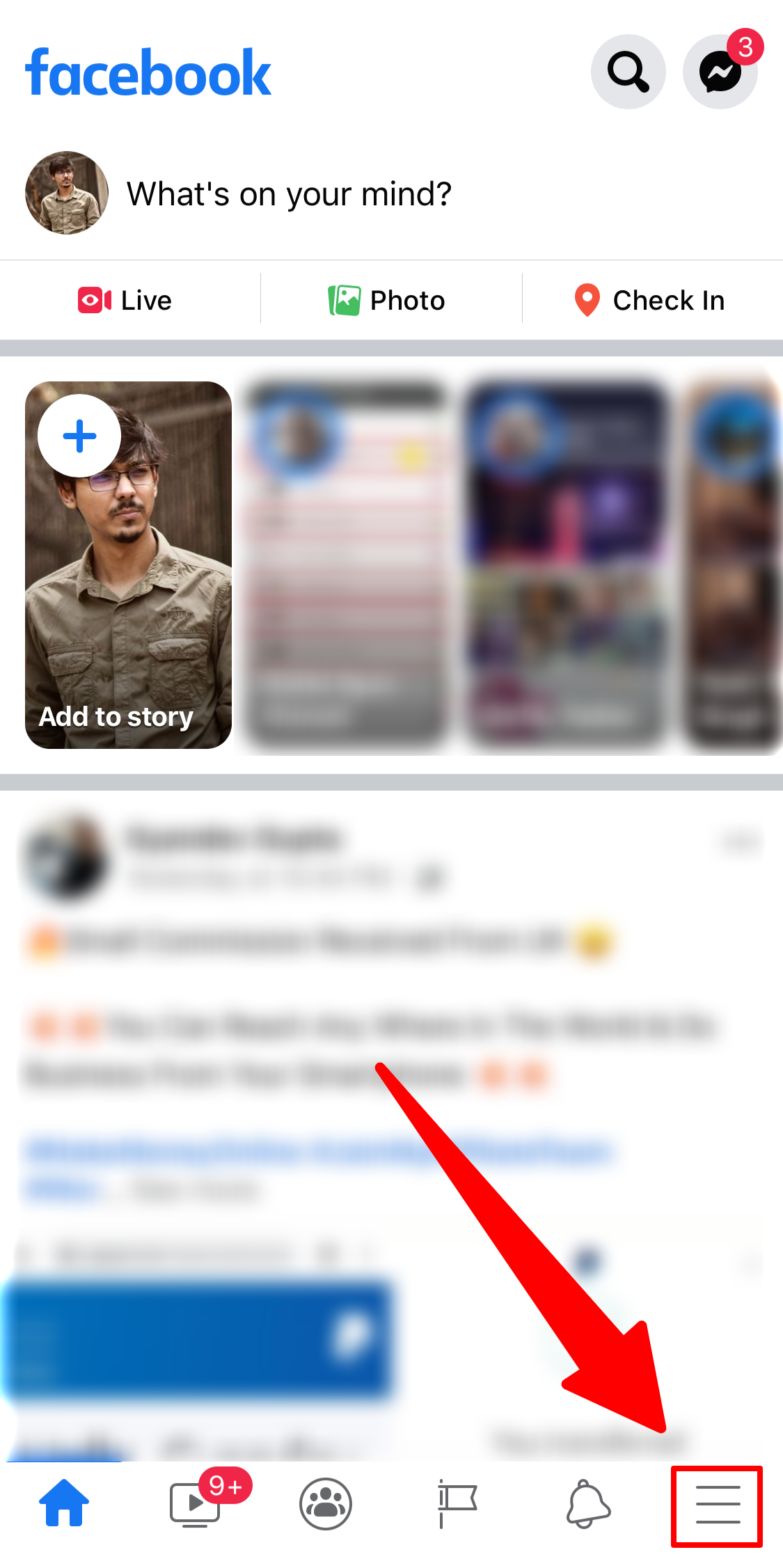 - Open your Facebook app and tap the three horizontal lines on the bottom right of the screen