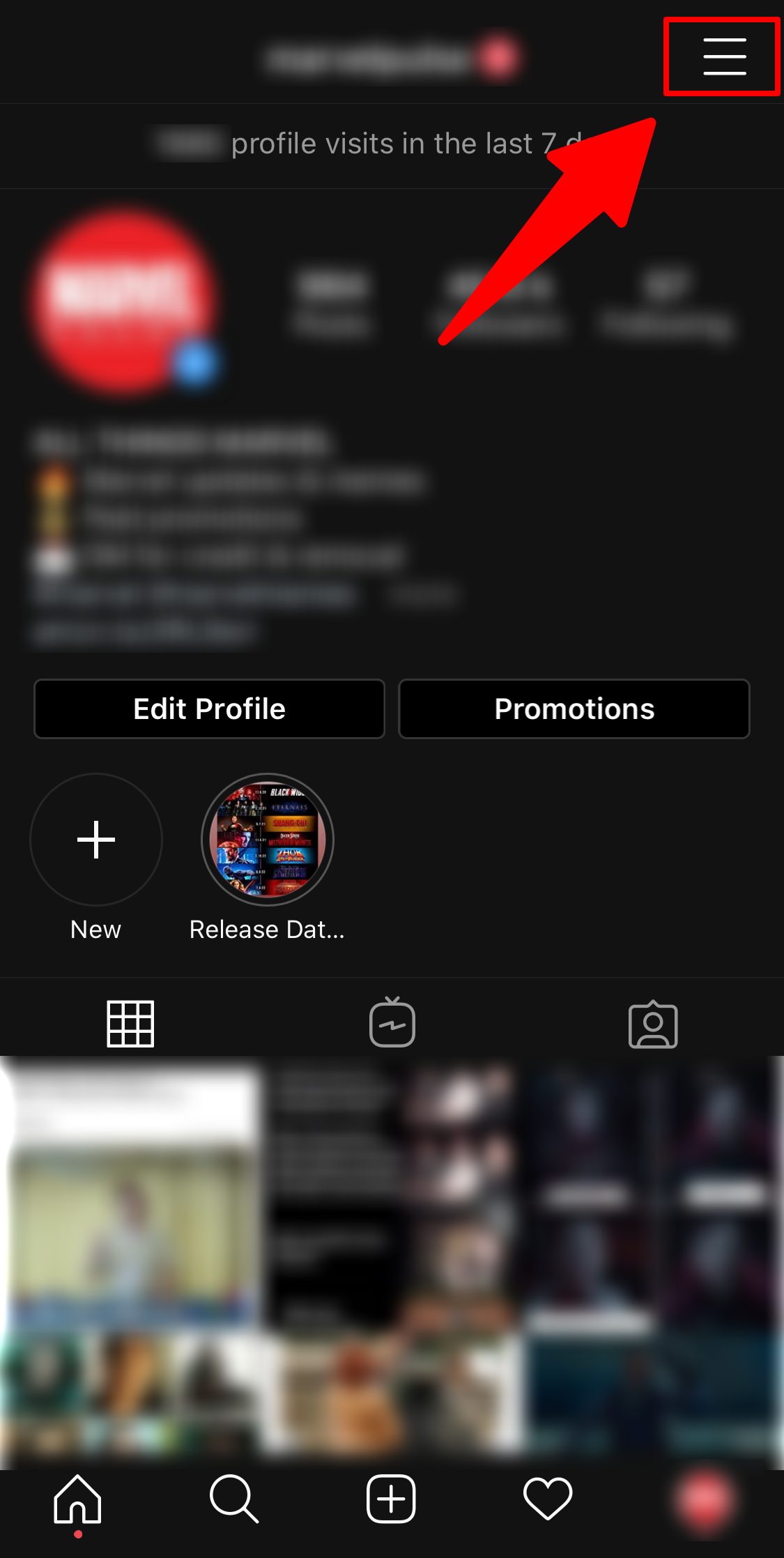 - Now, go to your Instagram profile and tap the three horizontal lines on the top right corner