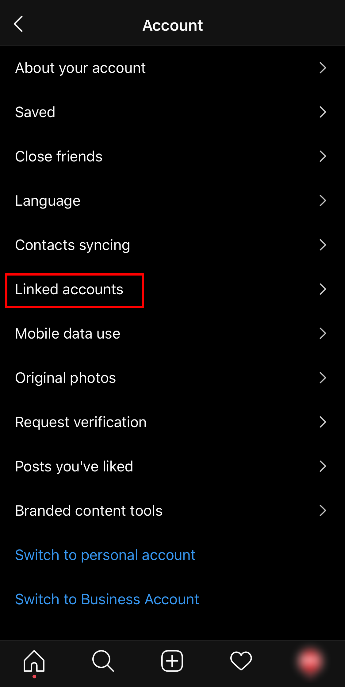 - On the bottom of the page, tap Switch to Professional account and follow all the steps
