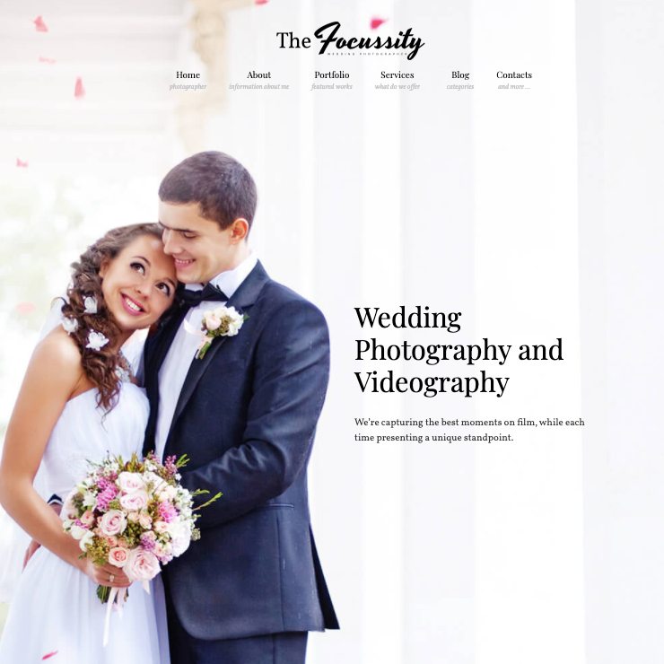 Focussity is a modern up-market WordPress wedding portfolio theme that would give photographers an exceptional online place to showcase their talent.